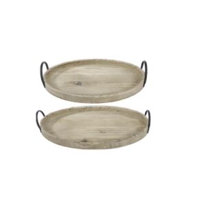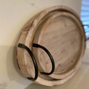 SET OF 2 – OVAL WOODEN TRAYS WITH HANDLES Dimensions – 43 x 29.5 x 9 & 54 x 34 x 9 Weight – 2kg Material – Wood, Metal Handles Arrives fully assembled Oval rustic wooden trays with black handles.  … Read More