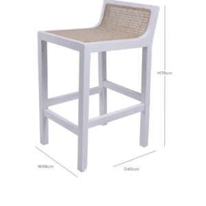WHITE MANDOLA BAR STOOL Pre order for February delivery now… Dimensions – W 50 x D 57 x H 90 cm Seat Height – 66cm Seat Depth – 46cm Width between chair legs: 46cm Colour – White Rattan Mandola, Rattan … Read More -