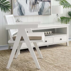 HUNTINGTON RATTAN ARM CHAIR WHITE Dimensions: W55cm x D 51cm x H 75cm Seat Height: 40cm Seat Depth: 46cm Arm Height 24cm (from seat to arm rest) Seat Depth: 46cm Comes With Cushion Seat Product Weight: 7.3kg Colour: White Wood: … Read More -