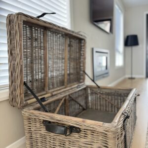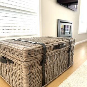 HAMPTONS KUBU TRUNK CHEST Dimensions – W110cm x D65cm x H50cm Weight – Material – Rattan/Leather Arrives fully assembled Colour – Natural – Kubu Grey The Hamptons inspired trunk/chest in a natural coastal wash is great for storage The rattan … Read More