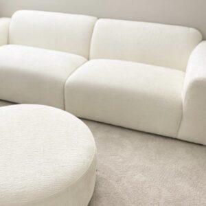 ALAYAN BOULCE FABRIC MODULAR SOFA Dimensions – W 246x D 90 x H 70 Dimensions per piece – W123x90x70 Material – Boucle Fabric – 100% Polyester Filling – High Density Foam, Wood Framing, Colour – Cloud – Warm White Ottoman … Read More -