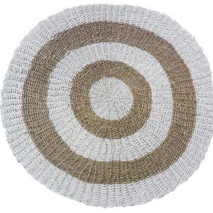 SEAGRASS & RAFIA RUG 120×120 Dimensions – 120W x 120 L x 1cm H Material – Seagrass/Rafia/Plastic Filling – Seagrass Colour – White & Natural -