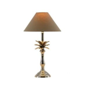 NICKEL PINEAPPLE LAMP – TAUPE/NATURAL SHADE SIZE – 25cmW x 25cm D x 45cm H Material – Nickel and Linen Colour – Nickel, Silver and Taupe/Natural