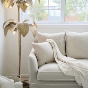 TWIN PALM FLOOR LAMP SIZE – W100cm x D 77cm x H 160cm Material – Iron Colour – Gold/Antique Bronze Assembly – Yes is required Weight – 8.5 kg -