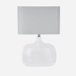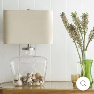 Fillable Glass Lamp With White Linen Shade SIZE -W 40.50 x D 25x H 58cmwith shade) Material – Glass/Iron/Linen Colour – Clear/Nickel/White Base/Light Fixture Material Details: Plated Iron & Glads Product Weight – 2.5kg Switch Type: On/Off Switch Switch location: … Read More -