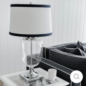 $459.00Charlotte Glass Lamp With Linen Shade (Navy Trim)