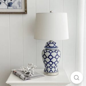 HAMPTONSBLUE/WHITE CERAMIC LAMP W/SHADE SIZE – W45.5cm D45.5cm H78.5cm Material – Ceramic/Iron/Linen Colour – Blue/White Shade W 56D 29.5 – Shape Drum Base/Light Fixture Material Details: Plated Iron & Glazing Ceramic Product Weight – 6.5kg Switch Type: On/Off Switch Switch … Read More -
