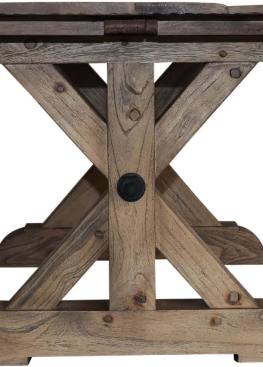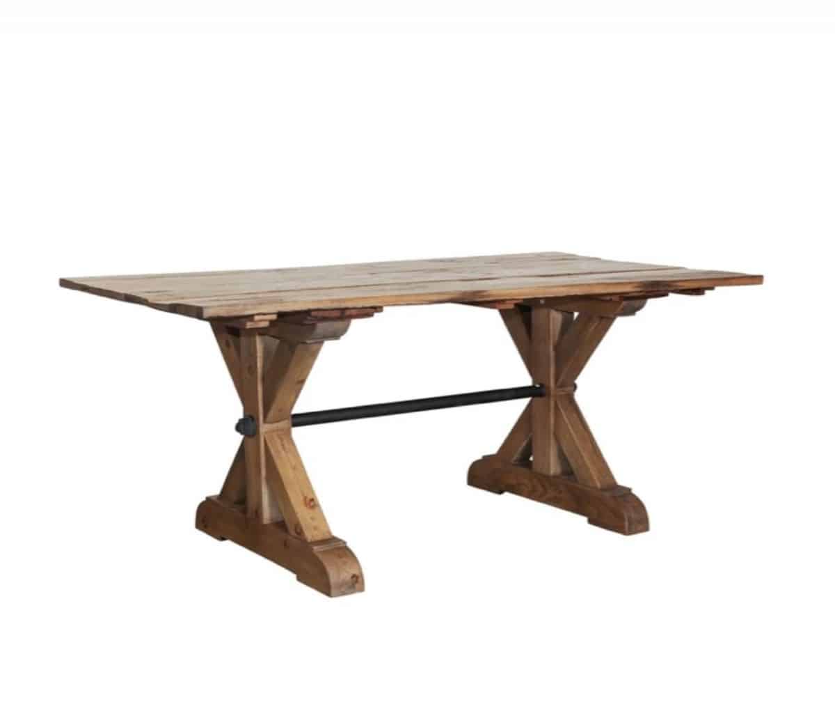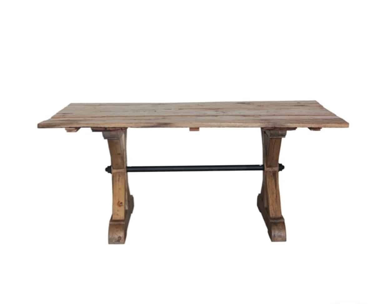- This recycled boatwood dining table is sturdy and stylish. This is a timeless piece of furniture that will never date due to the character it brings into your dining room.