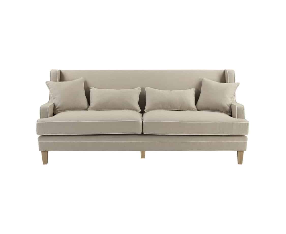 BONDI 3 SEATER SOFA – NATURAL W/WHITE PIPING