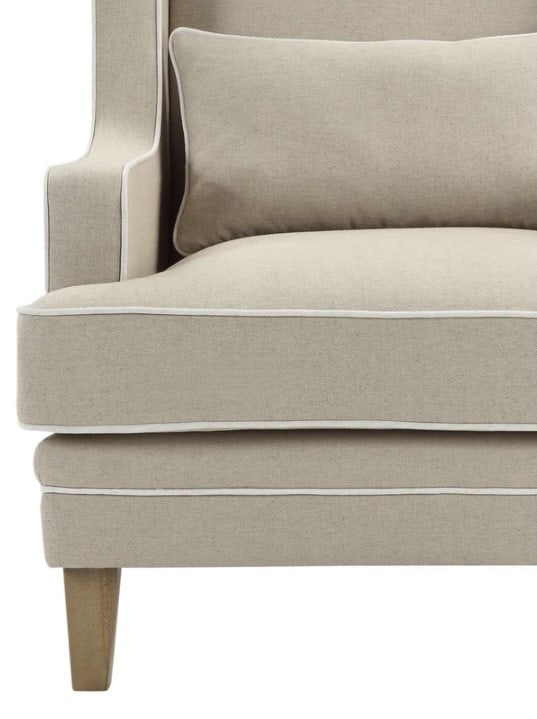 BONDI ARM CHAIR – NATURAL W/WHITE PIPING