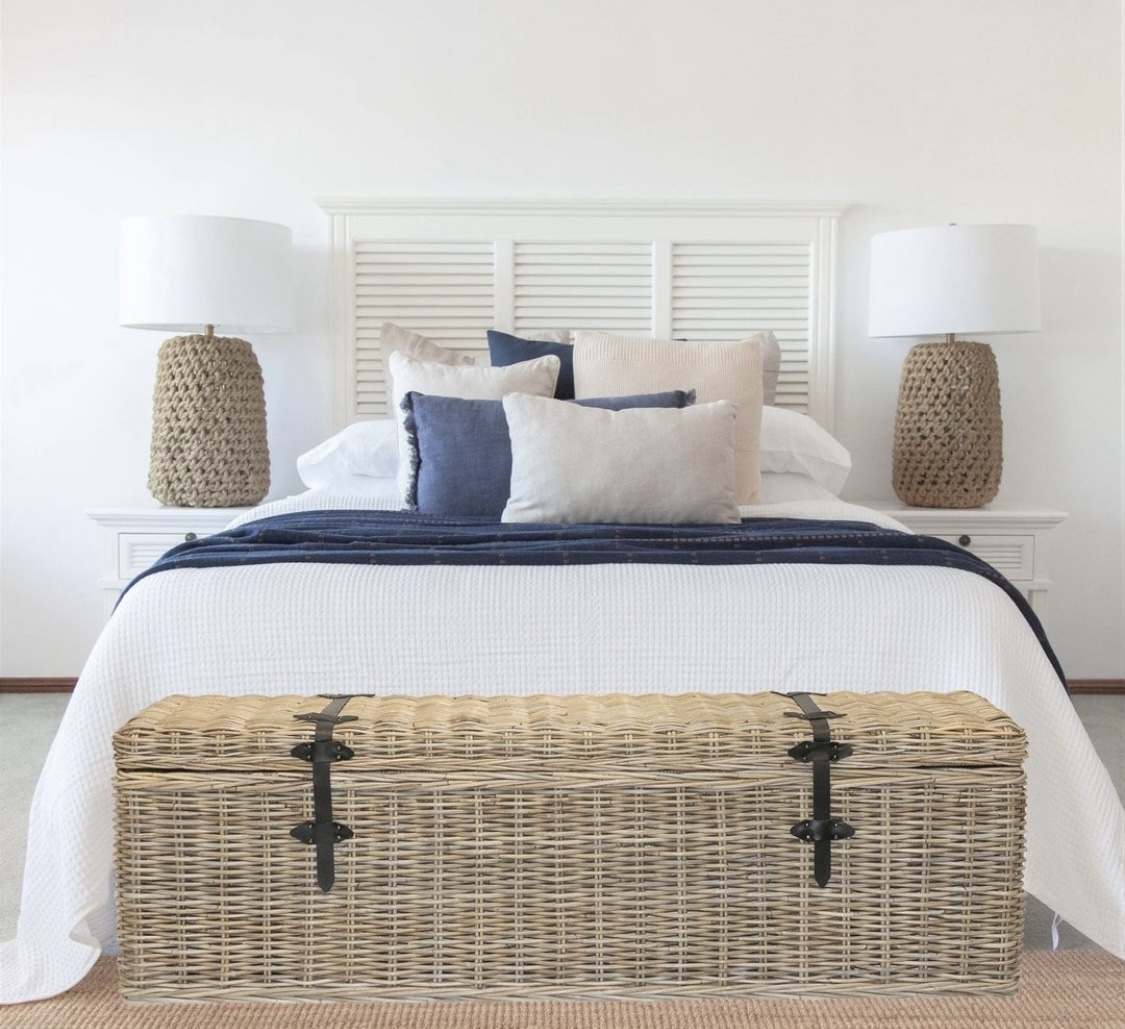 Colour – NaturalThe Hamptons inspired trunk/chest in a natural coastal wash is great for storage The rattan texture combined with the lined trunk brings a modern elegance that wors effortlessly in any space.