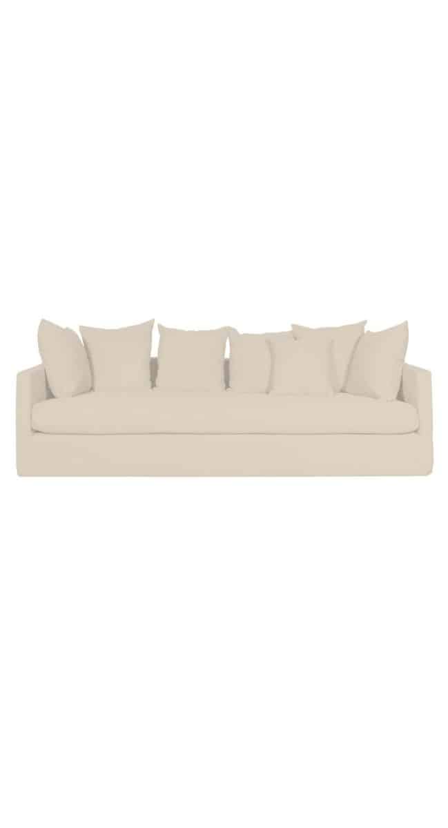 Old world charm, elegance, Â springs to mind when visualizing relaxing on this exceptional linen slip cover sofa. Â So timeless so comfortable.