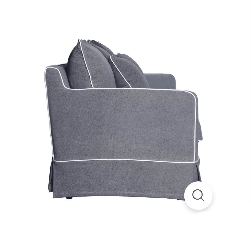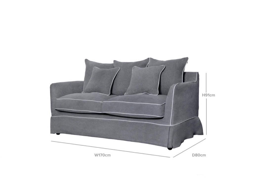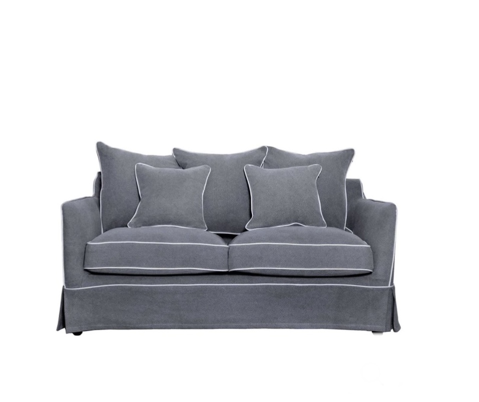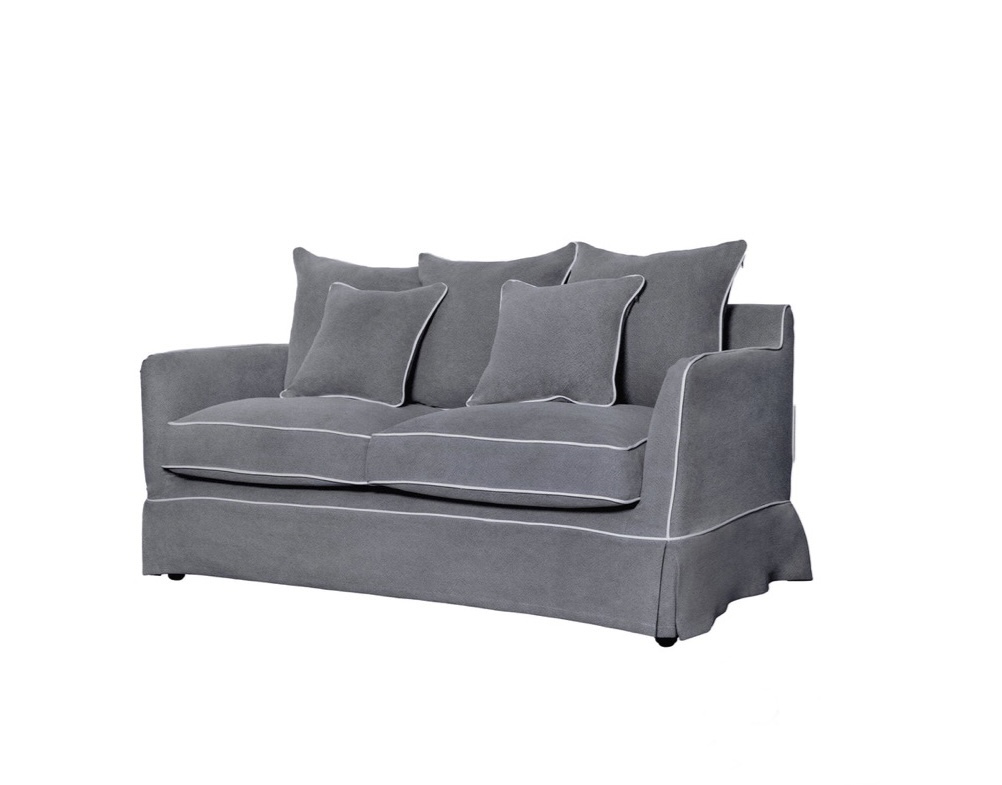 COASTAL SLIP COVER 2 SEATER SOFA – GREY W/WHITE PIPING