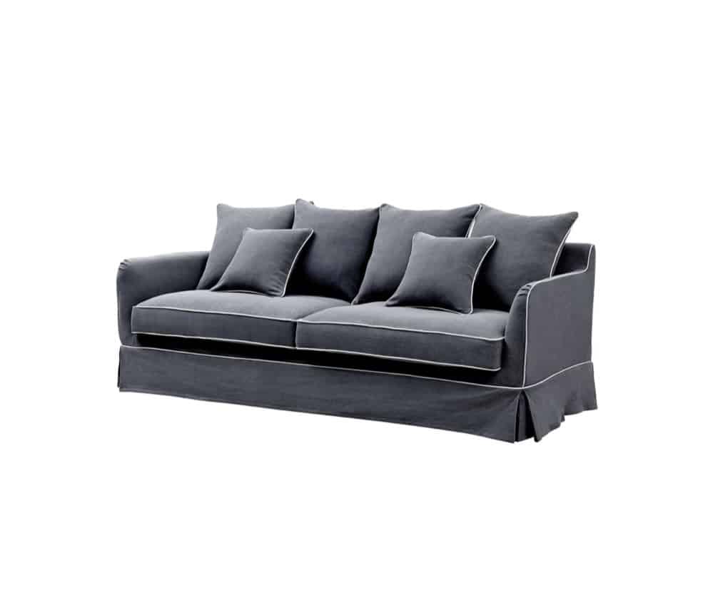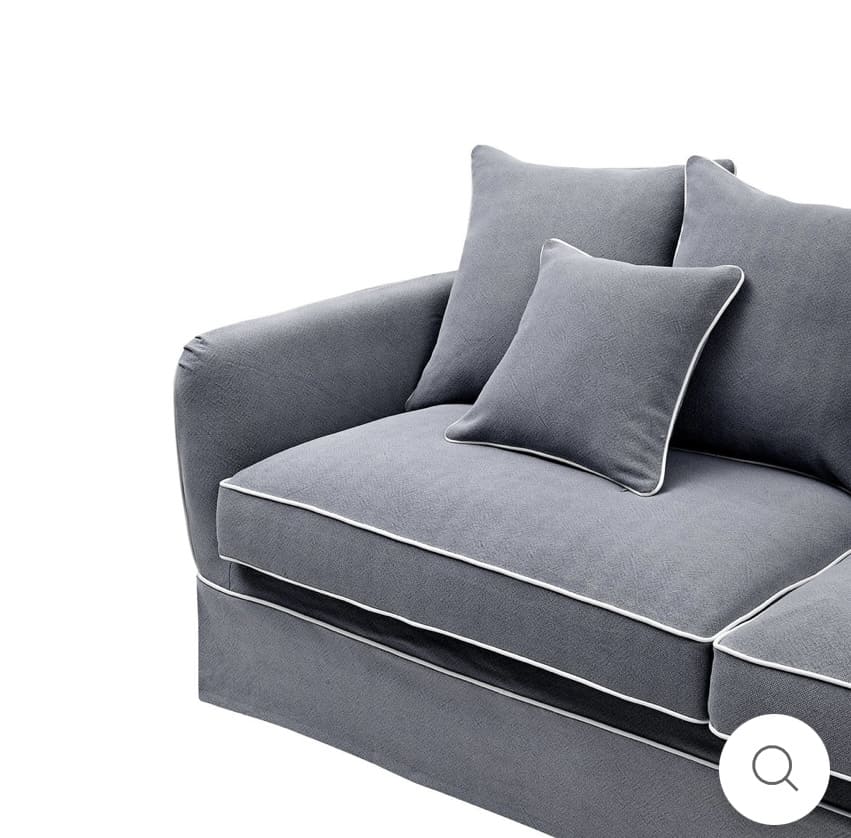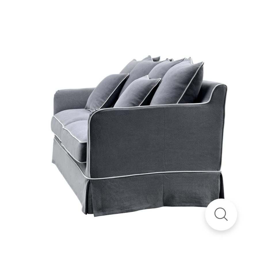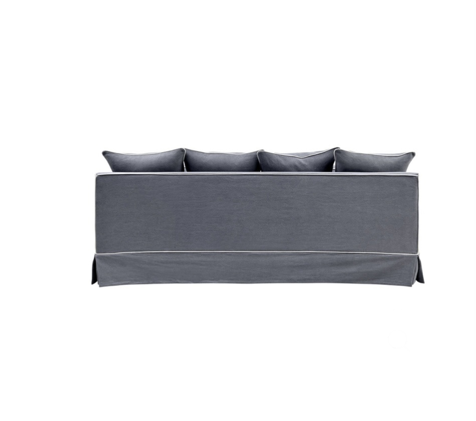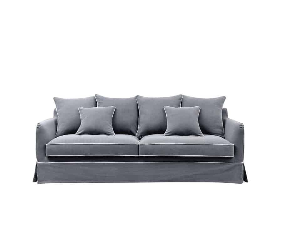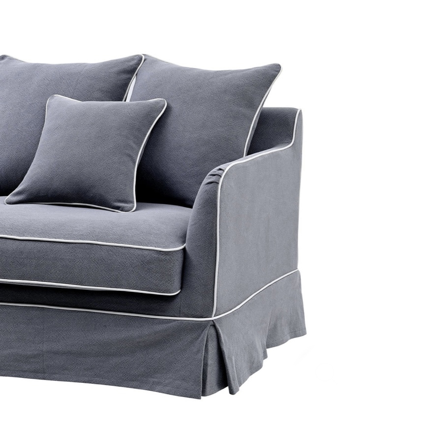 COASTAL SLIP COVER 3 SEATER SOFA – GREY W/WHITE PIPING