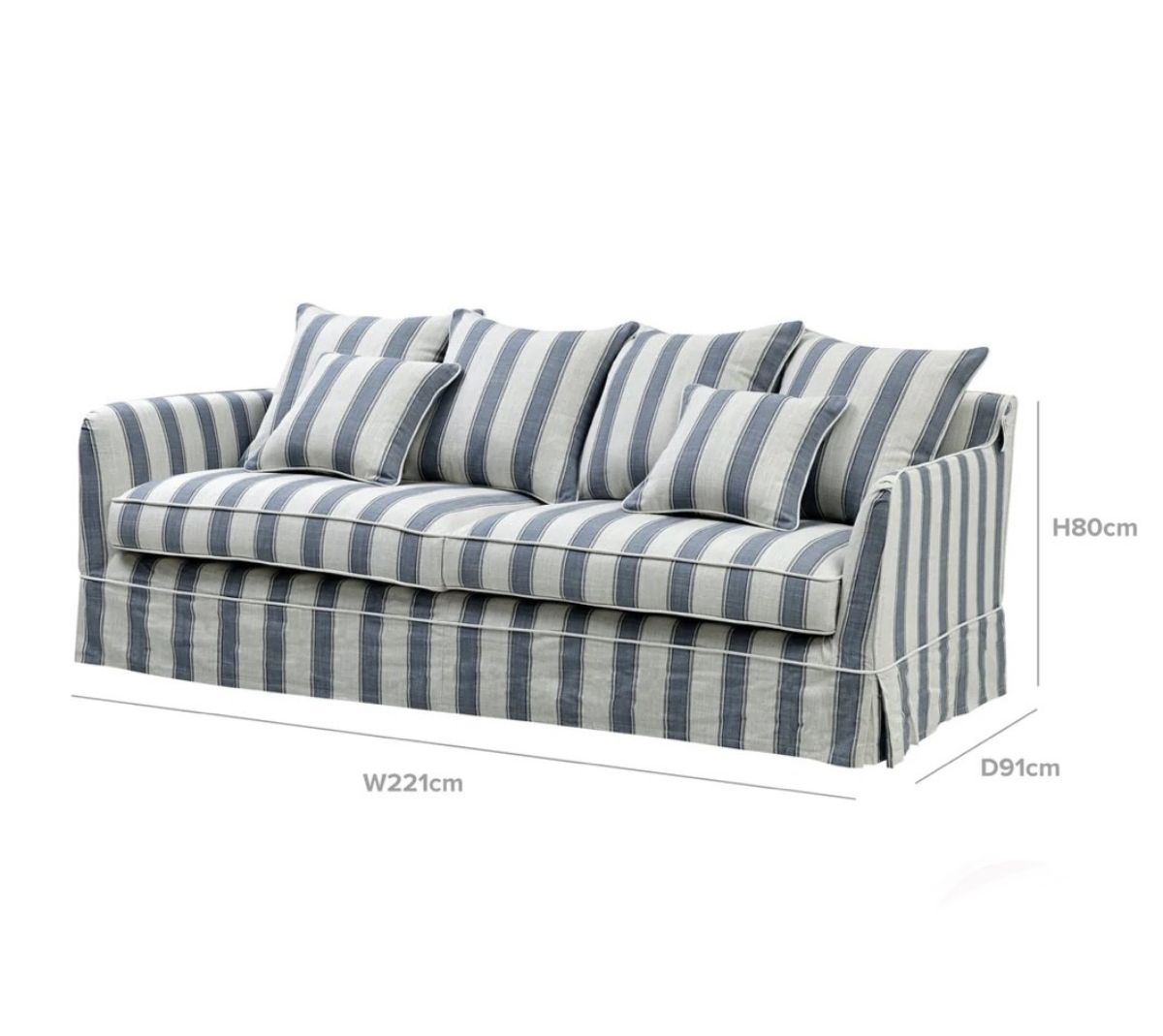 COASTAL SLIP COVER 3 SEATER SOFAÂ – Blue Sky Stripe