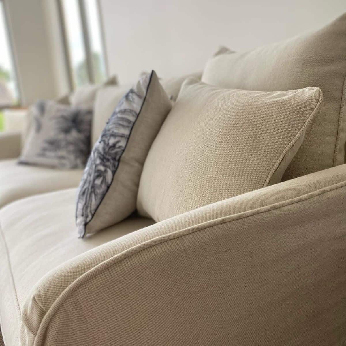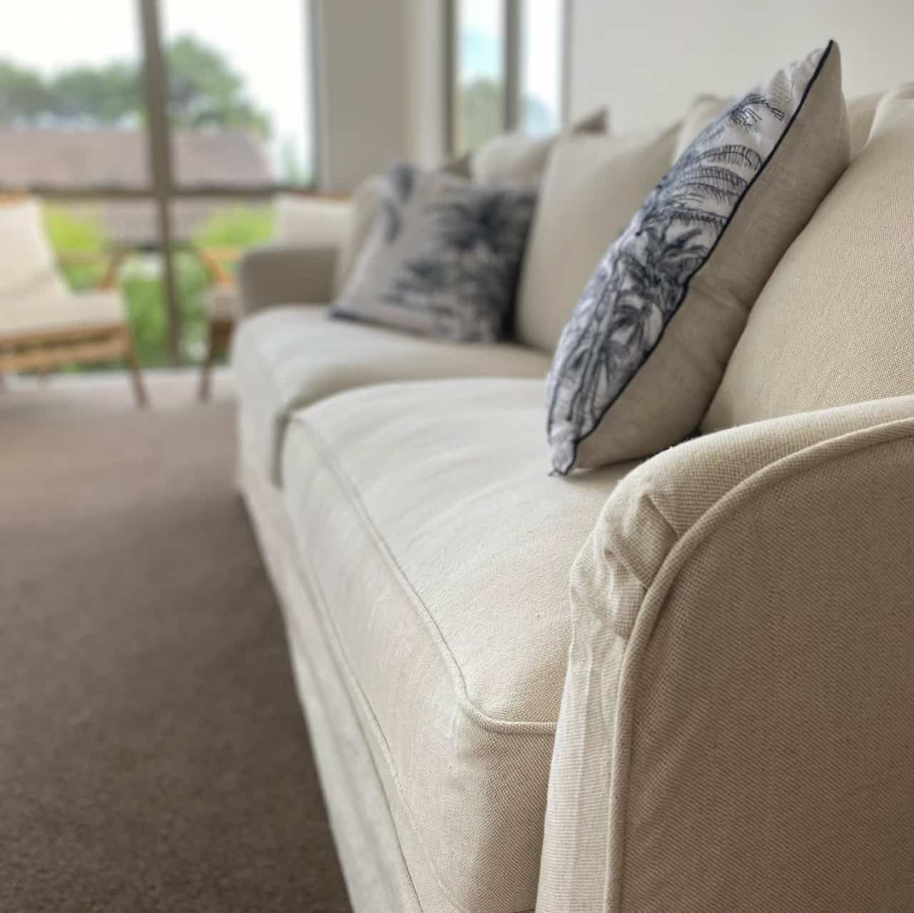 This beautiful natural colour with white piping Hampton’s style slip cover sofa oozes the wow and comfort factor. Spare covers are also available along with the matching arm chairs.