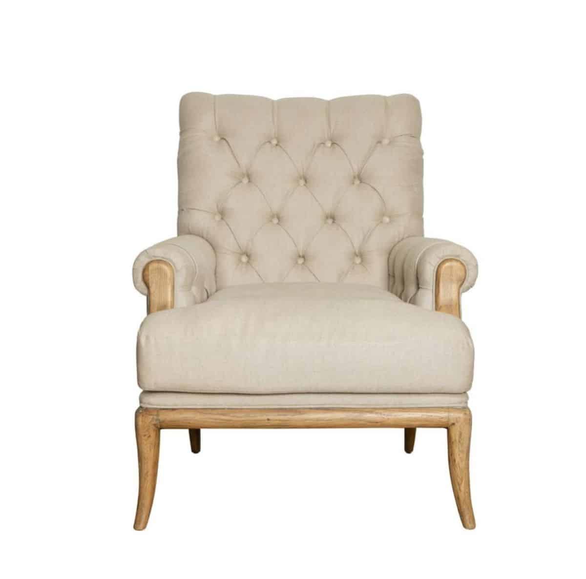 LINEN BUTTTON BACK ARM CHAIR _ NATURAL