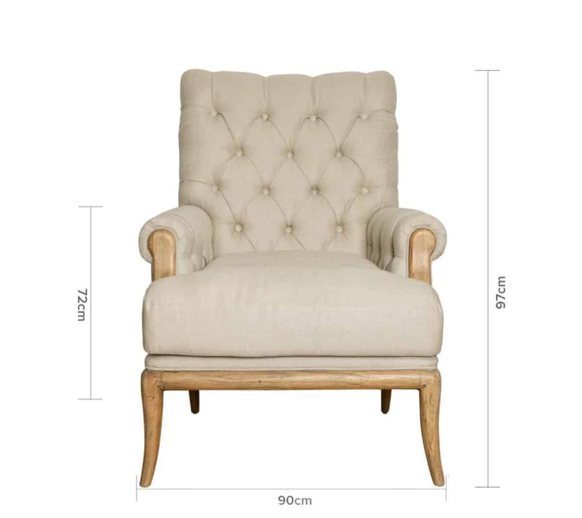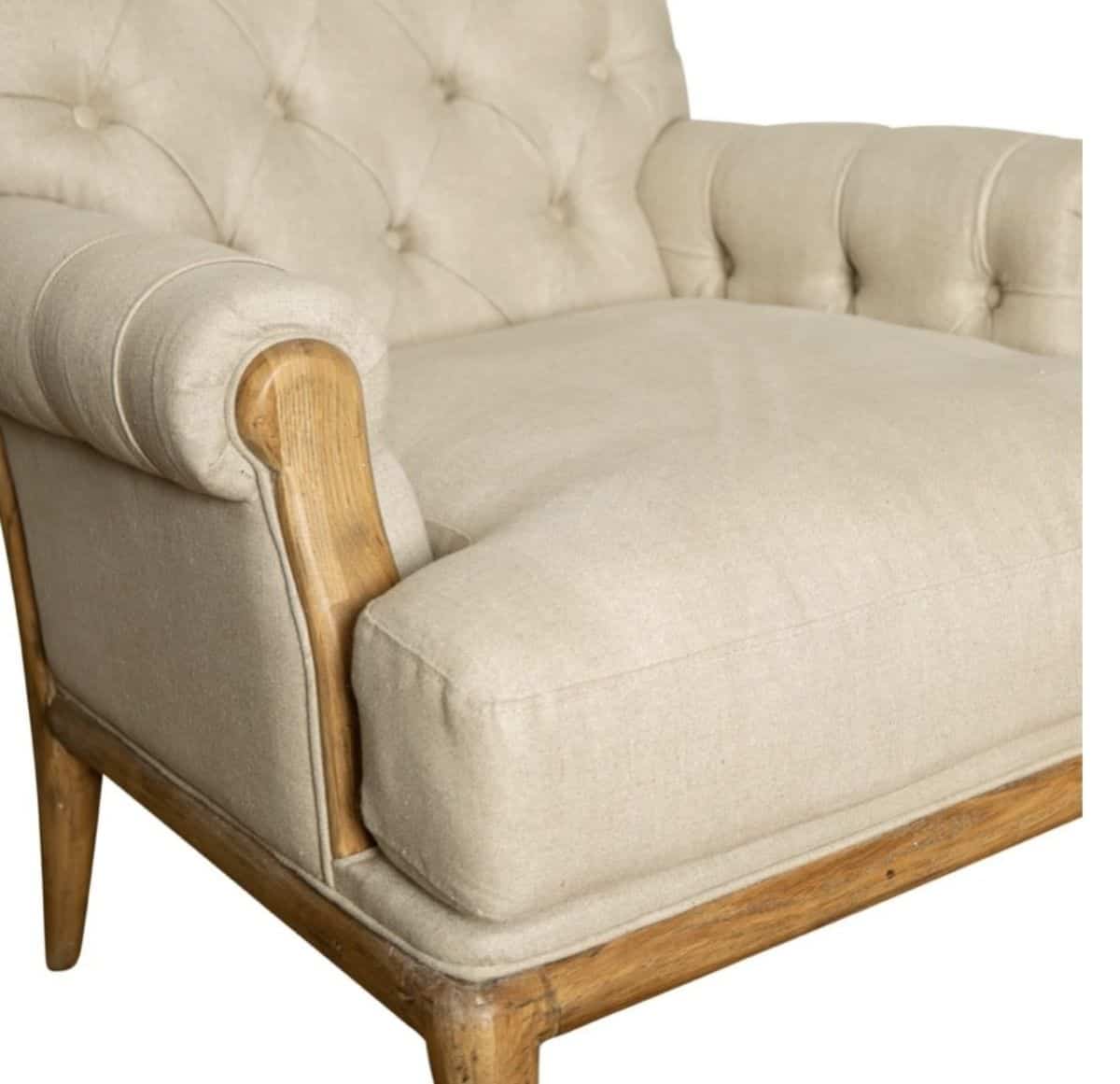Linen upholstery is timeless – giving an effortless aesthetic to your new favourite seat. The rolled arms and button-tufted back are the perfect finishing touches.