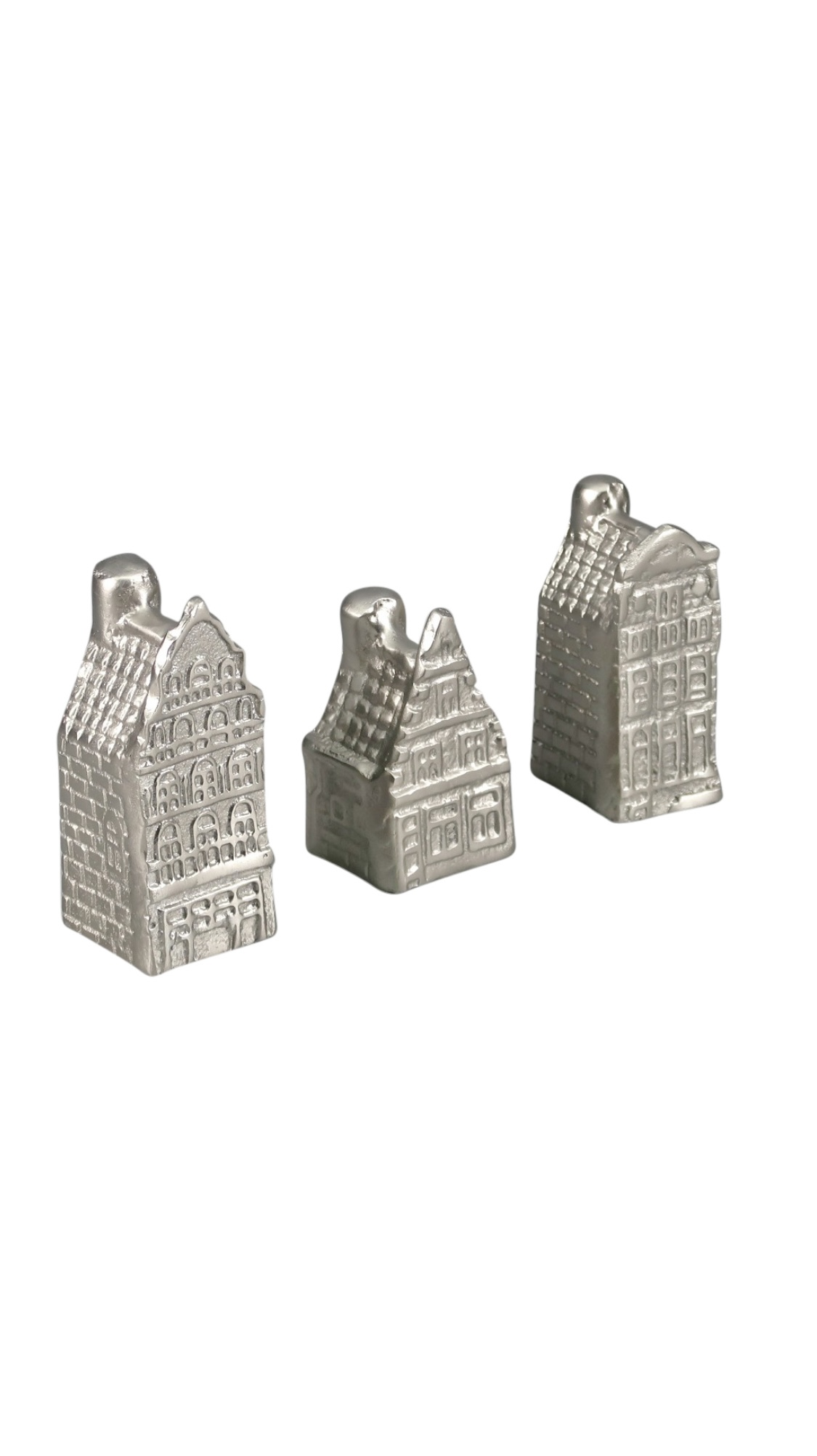 A sophisticated trio of silver house sculptures, offering timeless elegance and a modern touch to your home décor.