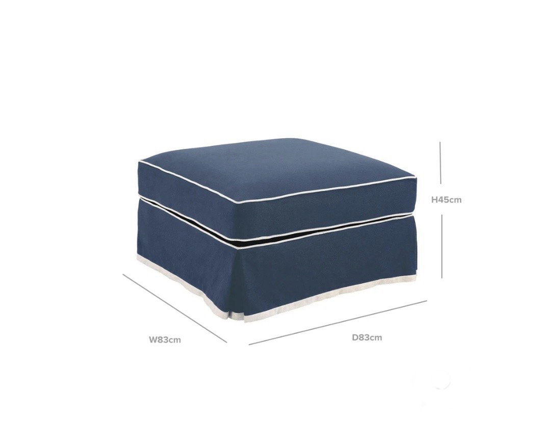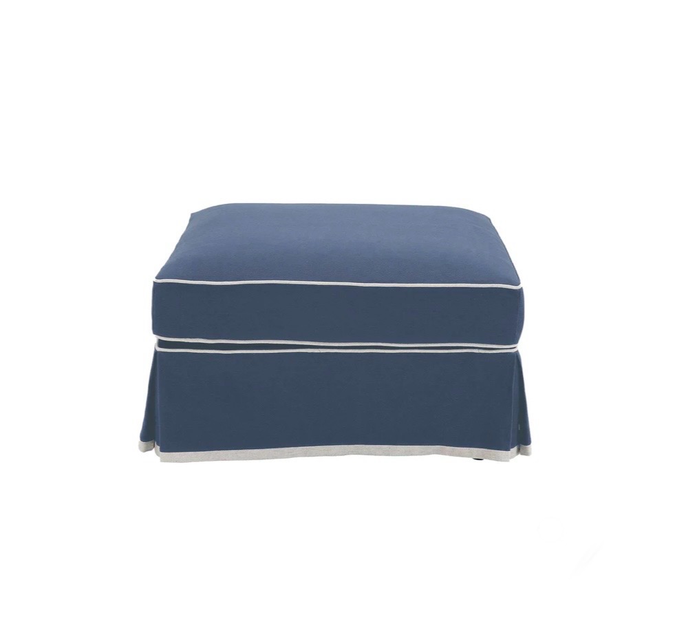 NOOSA SLIP COVER OTTOMAN NAV/WHITE PIPING.