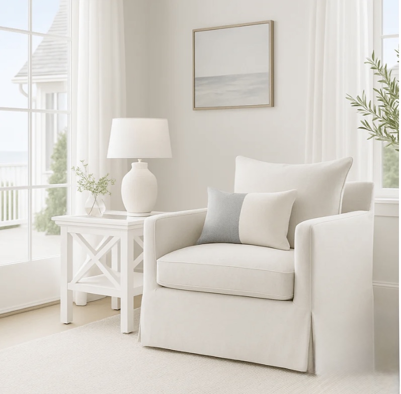 NOOSA SLIP COVER CHAIR – Warm White