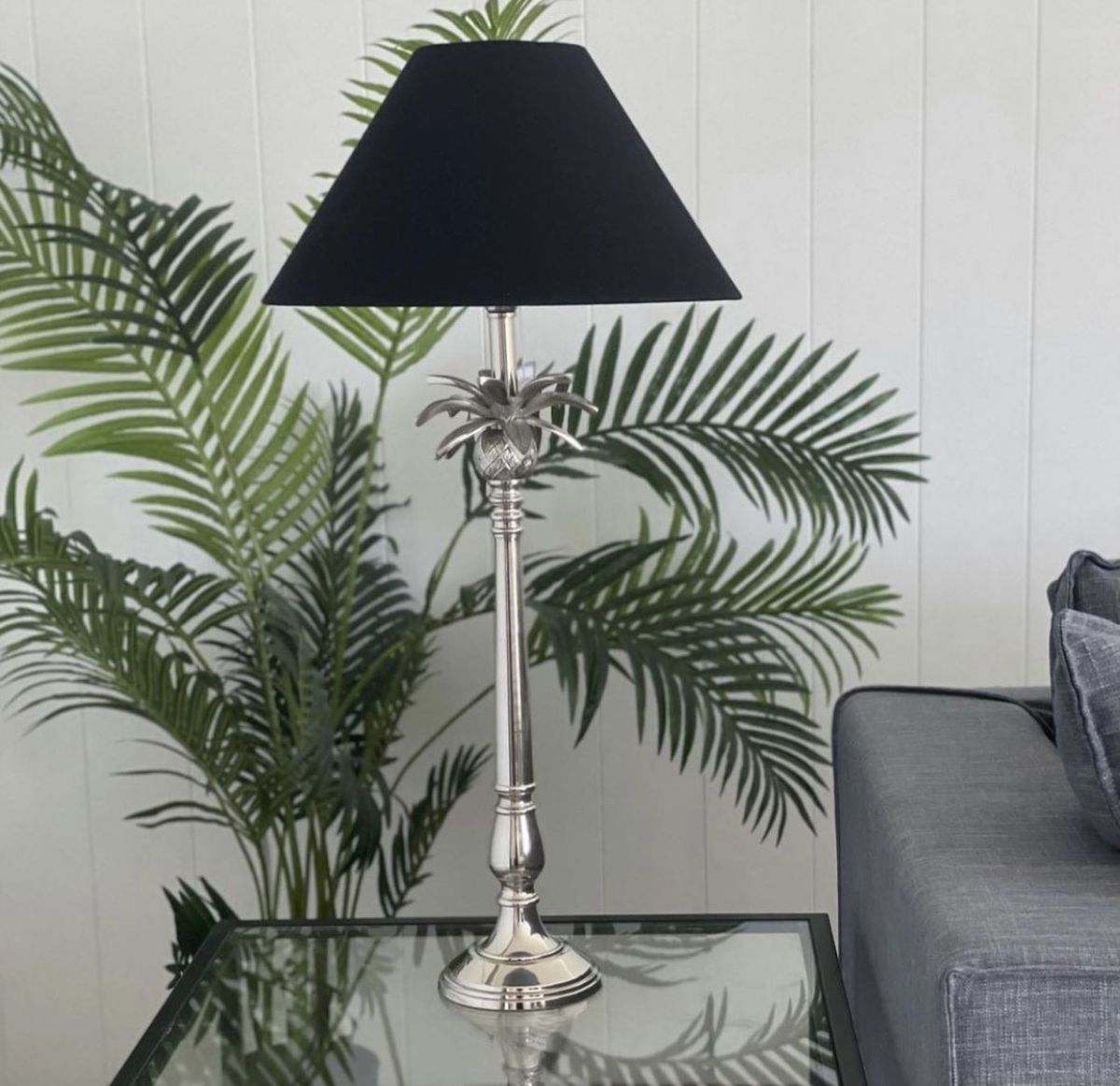Palm leaf with black linen lamp shade will sure make a stunning feature in your home. Beautiful detailing on the stem/base
