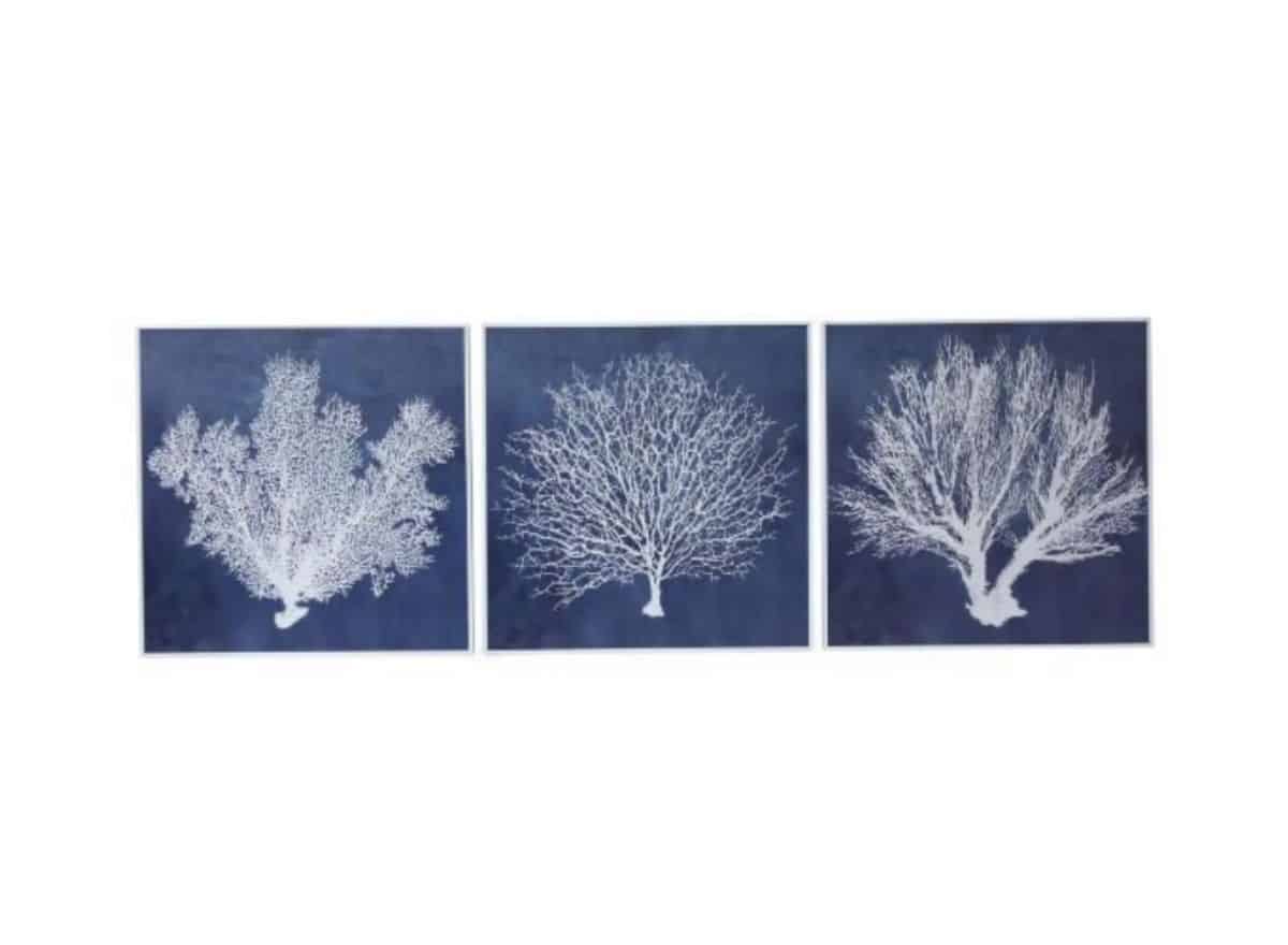 NAVY & WHITE CORAL FRAMED PRINTS – SET OF 3