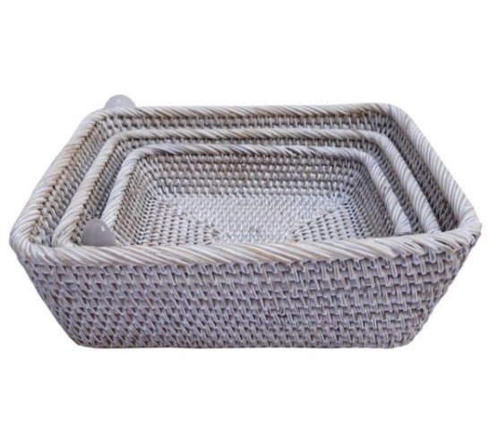 SET OF 3 SQUARE WHITE WASHED BASKETS