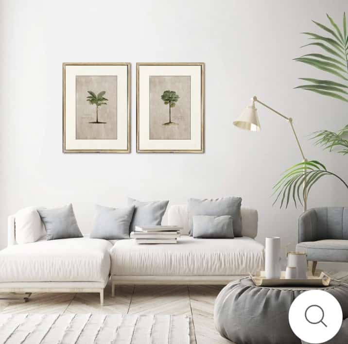 Low key tropical look featuring two Palms side by side in a natural timber frame.