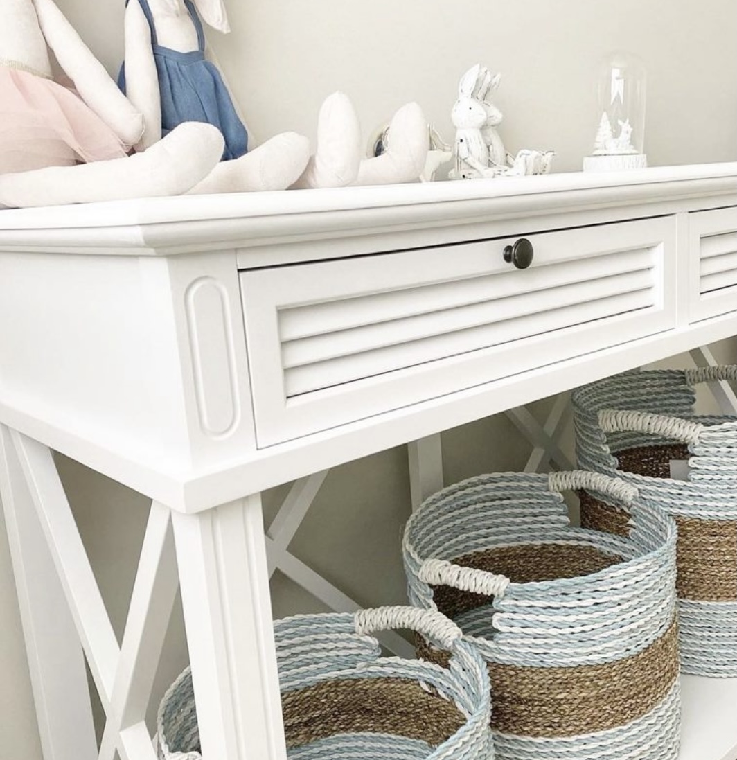 Hampton’s style with a touch of coastal console, hall table or bedroom dresser. White with louvered draws that make this cabinet standout from the rest. See our matching bedside tables.