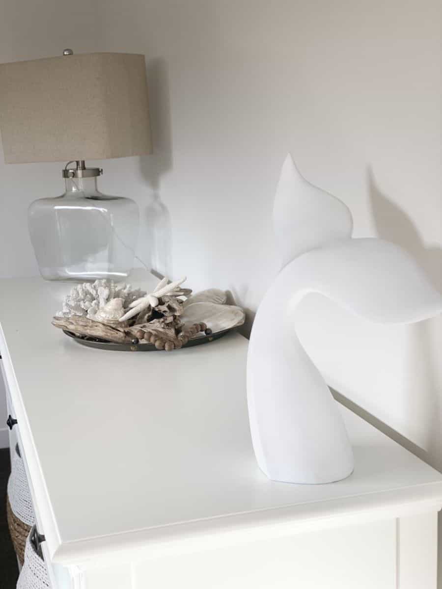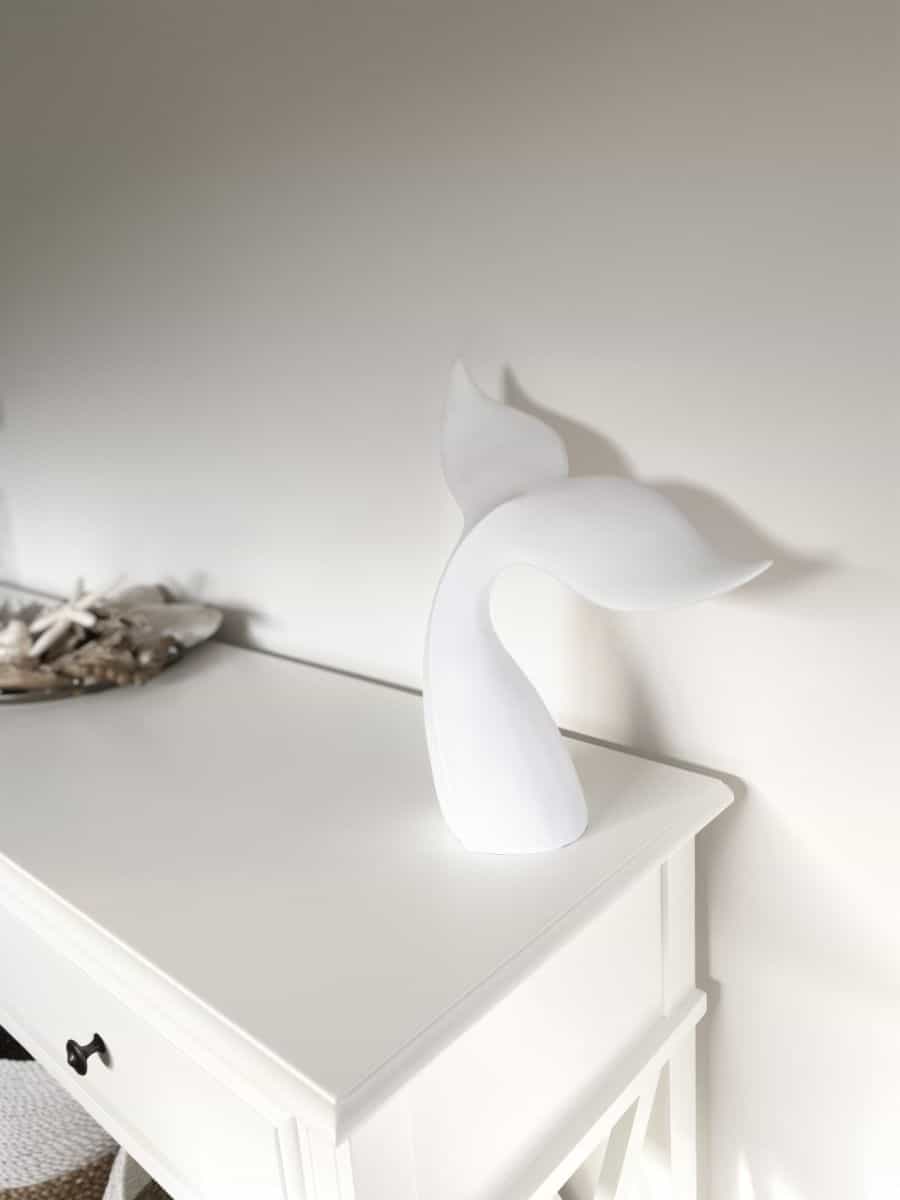 This coastal whale tail is a unique ornament with a beautiful detailed finished. Style it on a console or bedroom dresser.